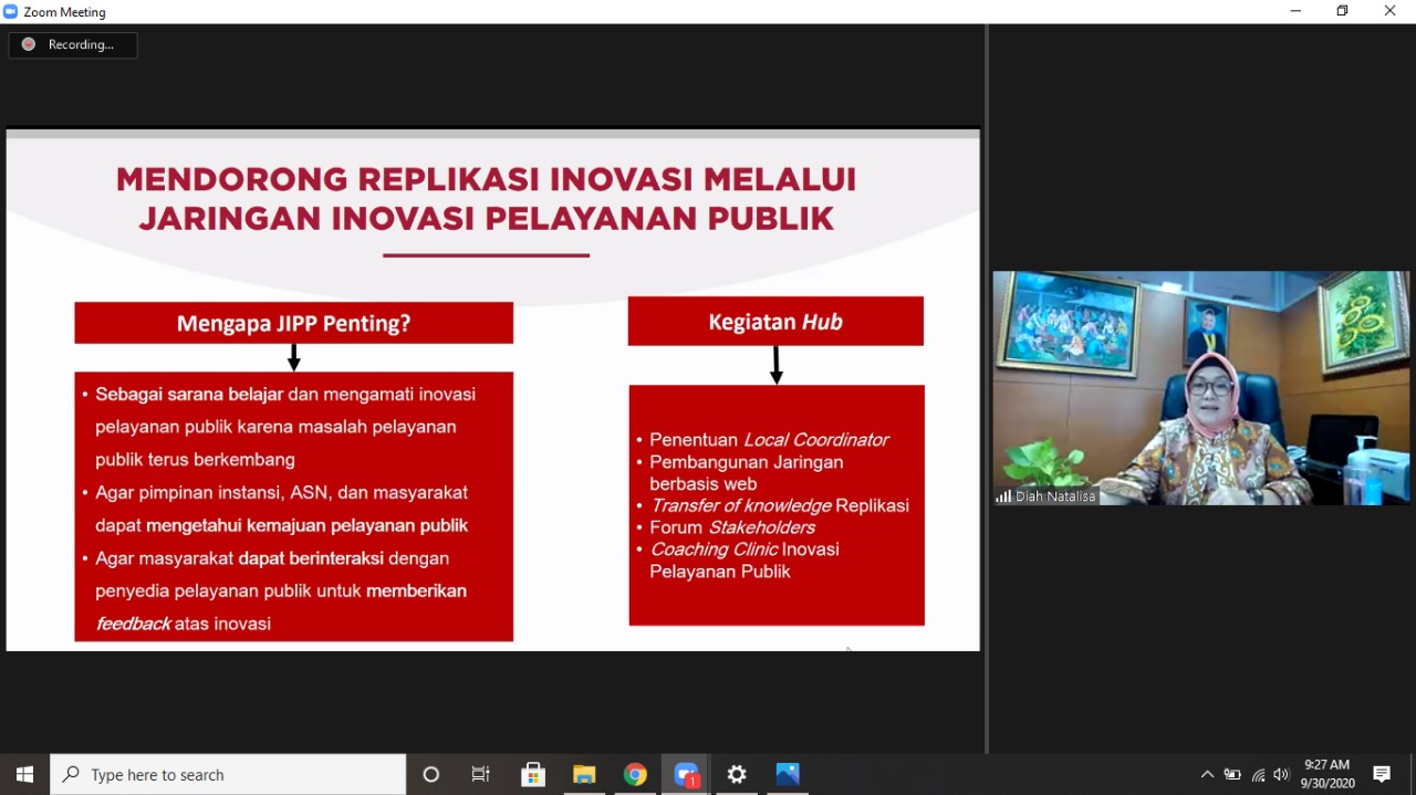 Setiap tahunnya, Kementerian PANRB secara rutin mengadakan Kompetisi Inovasi Pelayanan Publik (KIPP). Sampai tahun 2020 terdapat 693 inovasi yang masuk dalam TOP 99. Namun, inovasi tersebut relatif berada di Pulau Jawa. “Karena itu yang namanya replikasi inovasi ini harus bisa menyebarkan inovasi, Jadi yang maju bukan hanya Jawa tetapi juga di luar Jawa juga, karena itu replikasi sangat dibutukan,” tutur Redhi.